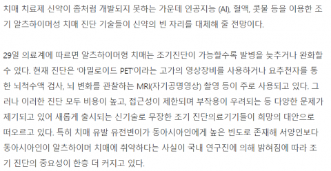 [스페셜리포트] AIㆍ혈액ㆍ콧물로 치매 예측…진화하는 조기 진단 기술 [2019-09-30]