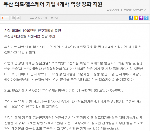 부산 의료·헬스케어 기업 4개사 역량 강화 지원 [2019-07-16]