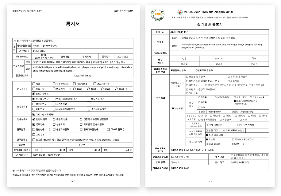 기술이 전남대병원 및 인제대병원 IRB 임상시험 승인을 받았습니다.