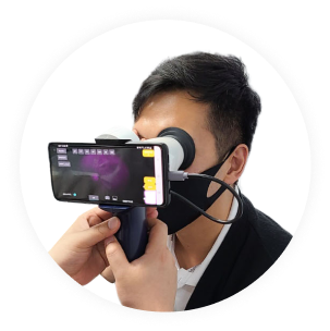 블루라이트 LED가 포함된 휴대용 안저카메라로 아밀로이드 플라크의