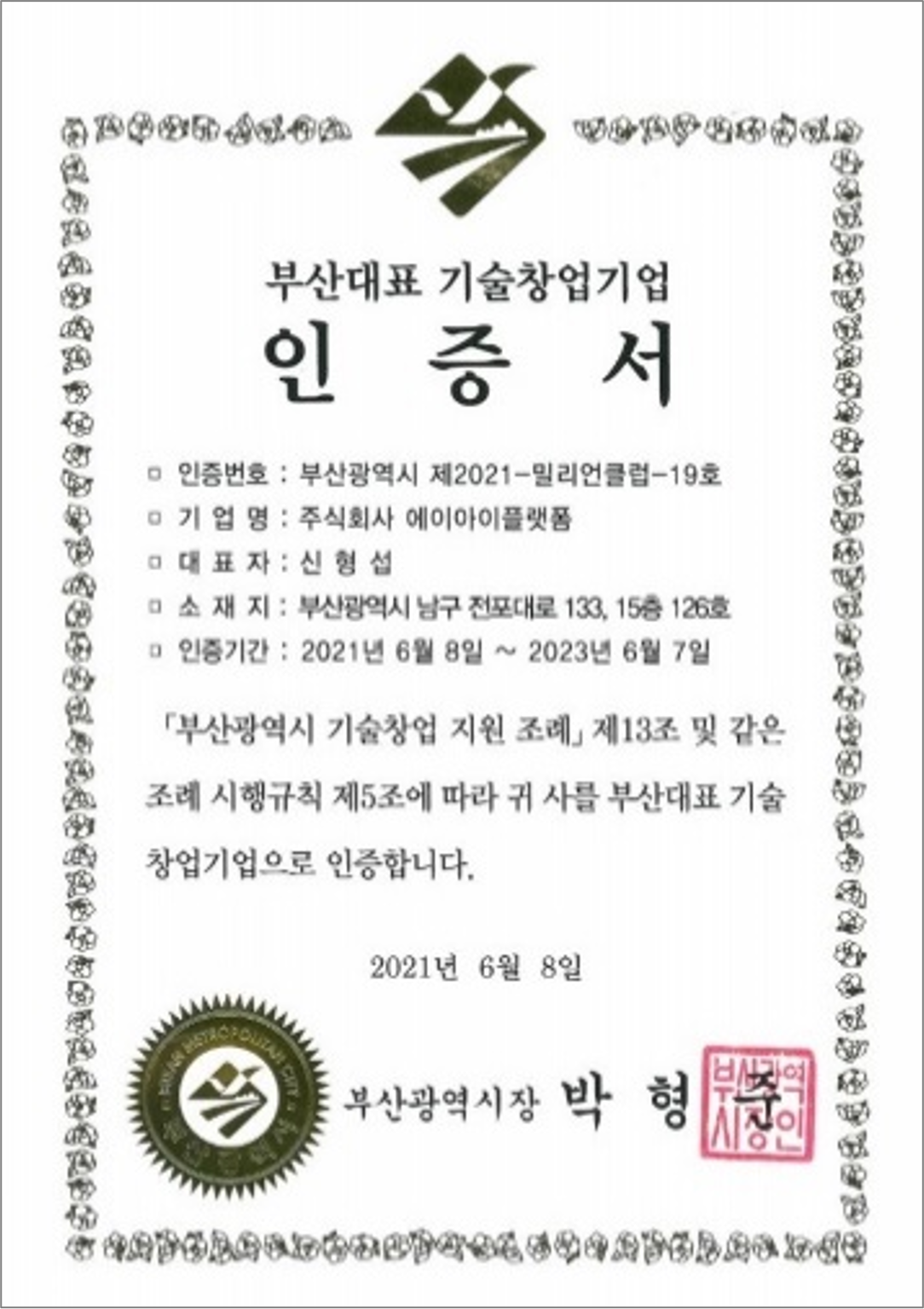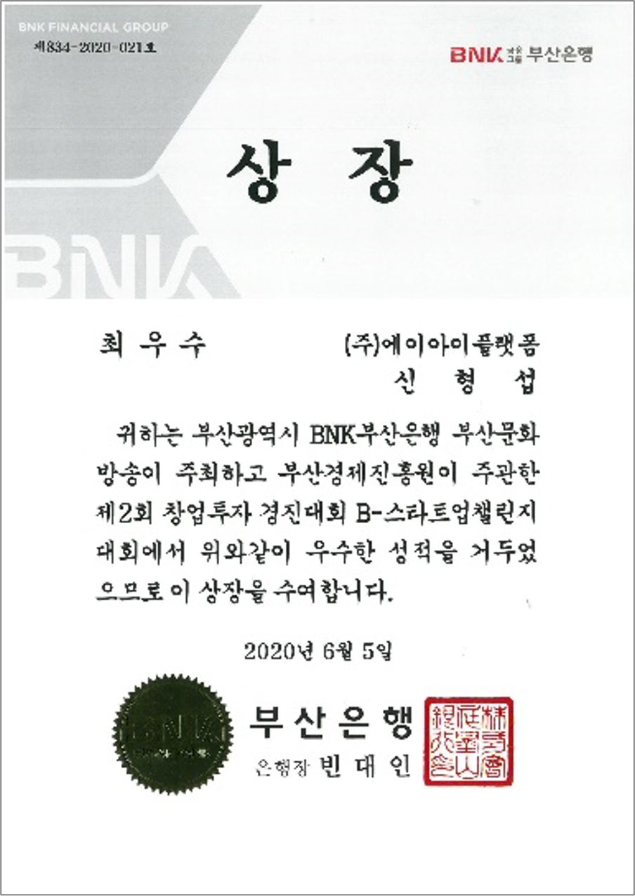 부산 창업투자 경진대회 B스타트업 챌린지 대회 최우수상 |