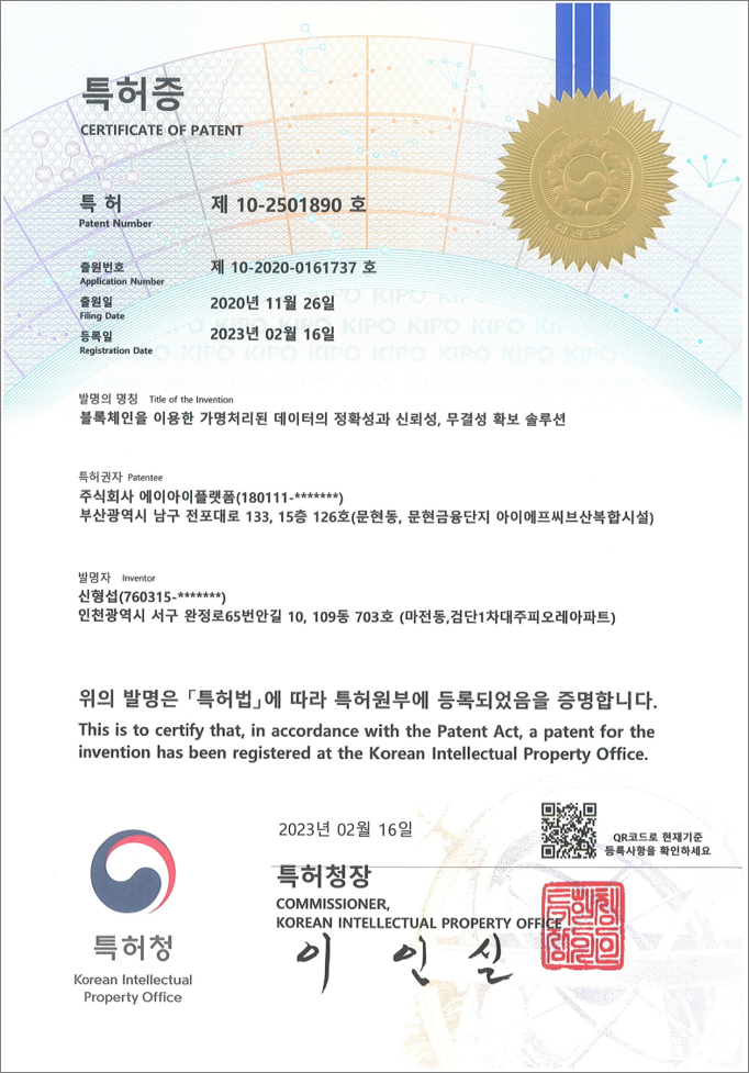 블록체인 을 이용한 가명처리된 데이터의 정확성과 신뢰성, 무결성 확보 솔루션